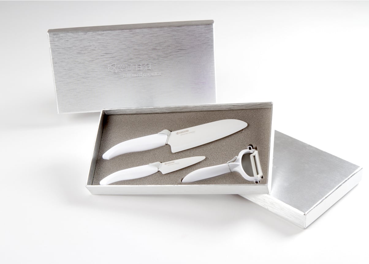 De keramische lemmets van Kyocera worden vervaardigd van een hoogwaardig Zirkonia keramiek, een ultra-licht HighTech materiaal, dat extreem hard en vrij van corrosie is en bijvoorbeeld ook in de ruimtevaart wordt gebruikt. Het dichte en gladde oppervlak van het lemmet maakt zeer precies en huigdun snijden mogelijk en geeft geen overdracht van metaal ionen. Het is daardoor absoluut reuk- en smaakneutraal.